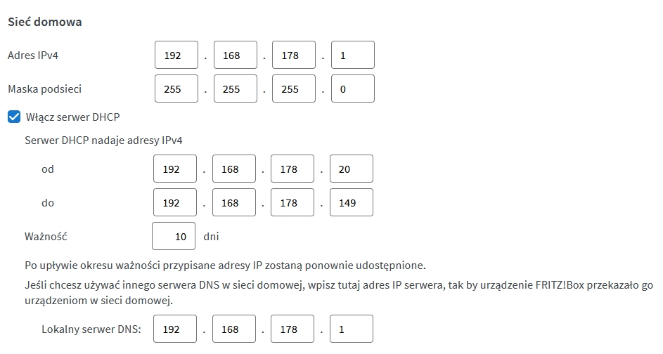 Połączenie dwóch routerów wymaga przemyślenia w celu uniknięcia niekontrolowanego dublowania się funkcji w sieci, co może prowadzić do problemów z funkcjonowaniem. Weźmy na przykład routery FRITZ!Box. Gdyby połączyć dwa routery kablem w jedną sieć wystąpi od razu konflikt adresów IP, które fabrycznie ustawiane są na wartość 192.168.178.1. Oba urządzenia i ich serwery DHCP zaczną przyznawać z tej samej puli adresy poszczególnym komputerom i tu też może nastąpić konflikt. Zanim zechcemy połączyć router z routerem, należy w jednym z nich zmienić standardowy adres IP na inny, z tej samej podsieci, np. 192.168.178.2 oraz wyłączyć w nim DHCP. Odpowiednie funkcje dostępne są w menu Sieć domowa>Sieć>Ustawienia IPv4: