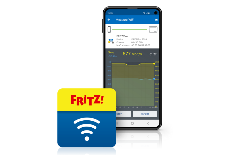 Dzięki aplikacji FRITZ!App WLAN możesz mieć oko na swoją sieć Wi-Fi przez cały czas. Zmierz prędkość połączenia swojego smartfonu w różnych lokalizacjach w sieci i uzyskaj informacje o wszystkich urządzeniach FRITZ! w sieci domowej i istniejącym połączeniu Wi-Fi.
