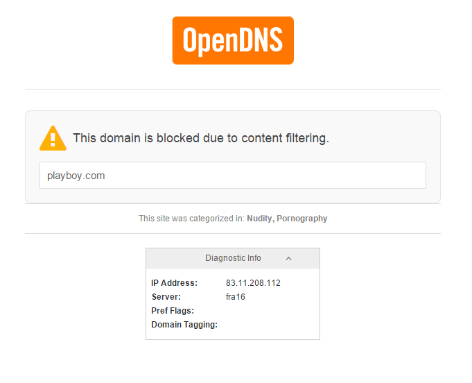 Przy zastosowaniu serwerów OpenDNS Family Shield po wpisaniu adresów stron internetowych dla dorosłych, wyświetlona zostanie strona z informacją o zablokowaniu dostępu do witryny. |