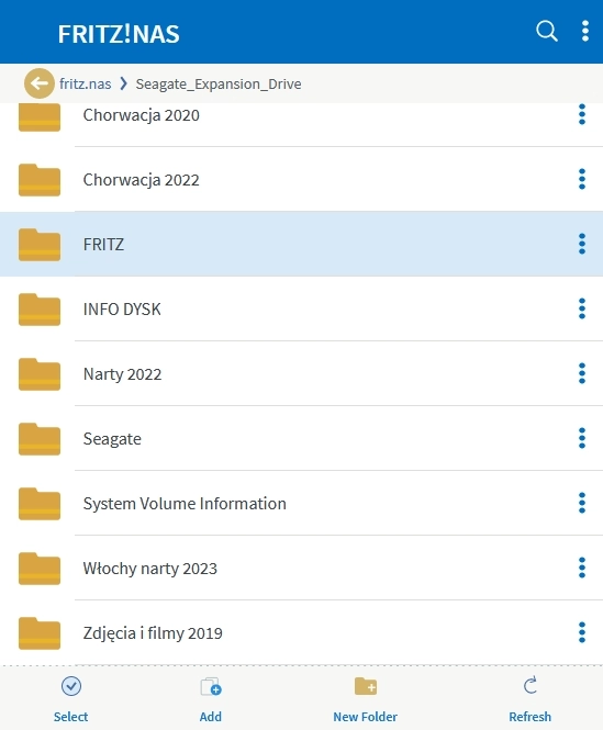 Po pierwsze, zawartość dysku można wyświetlić w przeglądarce internetowej, wpisując adres „fritz.box/nas”.