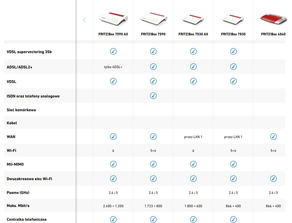 Oferta routerów wydaje się tak bogata, że trudno z niej wybrać coś dla siebie. Jest to o wiele prostsze, jeśli chodzi o router FRITZ!, ponieważ modele nie różnią się znacznie funkcjami, a jedynie wyposażeniem, głównie sposobem łączenia się z Internetem, typem Wi-Fi oraz funkcjami telefonicznymi i Smart Home.