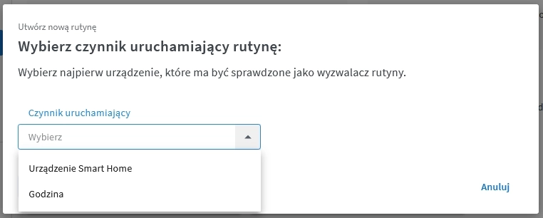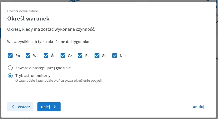 Dana rutyna może być uruchamiana na podstawie czasu (opcja „godzina)