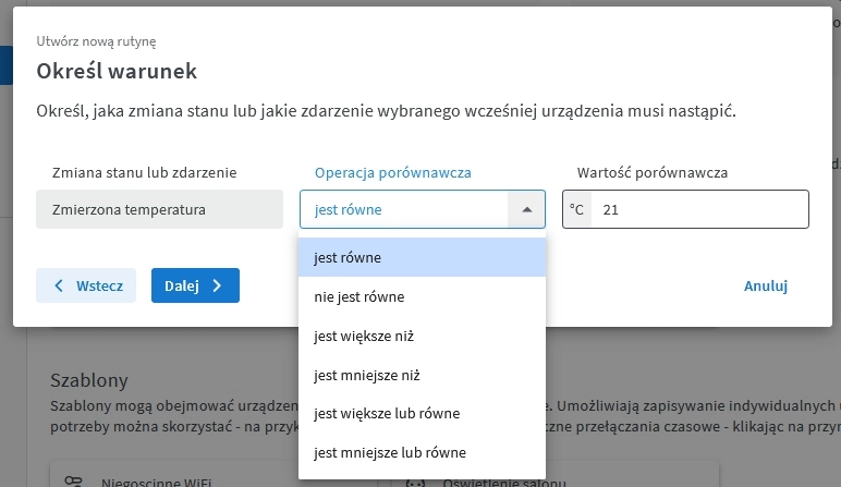 lub w zależności od stanu innego urządzenia Smart Home, np. temperatury zmierzonej przez termostat.