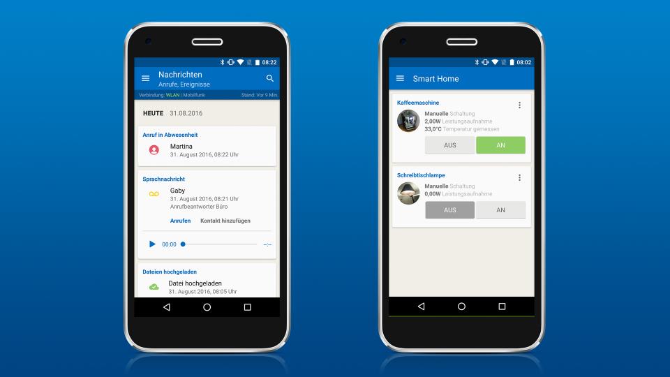 Wśród dedykowanych produktów znajdziesz MyFRITZ!App – aplikację na smartfony i tablety z systemem Android oraz iOS. Dzięki niej będziesz mieć zawsze pod ręką dostęp do listy połączeń i wiadomości głosowych z FRITZ!Box. Masz również możliwość podejrzenia pamięci wewnętrznej urządzenia i wszelkich podłączonych pamięci USB. Kilkoma kliknięciami możesz zmienić ustawienia i zarządzać dostępnymi funkcjami. Dodatkowym atutem jest również możliwość sterowania urządzeniami, które należą do systemu inteligentnego domu, jak FRITZ!DECT, FRITZ!Fon, FRITZ!Repeater i FRITZ!Powerline.